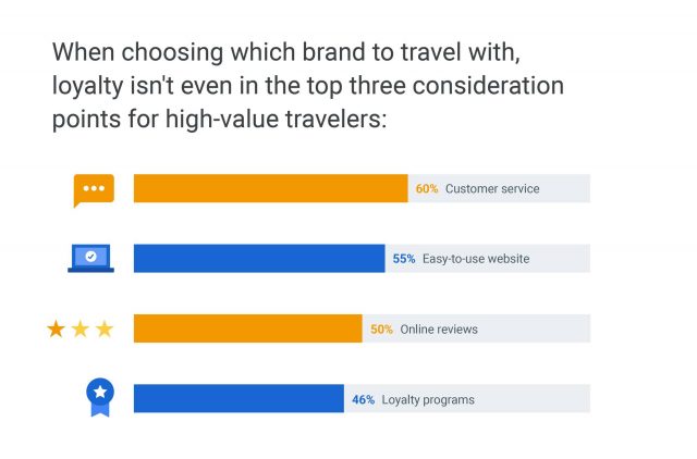 Y por último el 46% respondió que los programas de fidelización contribuyen a visitar el mismo hotel, ya que mediante la acumulación de puntos pueden acceder a productos, descuentos y beneficios variados. En este punto, Google resalta la importancia de los programas de fidelidad como medio para recompensar la confianza de los clientes y estrechar aún más el relacionamiento entre ambas partes de modo que el vínculo genere beneficios para todos.